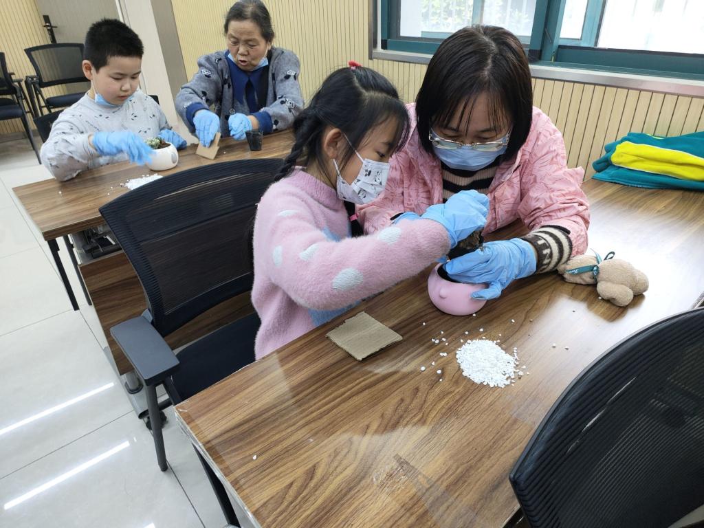 3月12日下午,在第45个植树节来临之际,3003新葡的京集团网址阳光志愿服务中心与宁国新村社区开展“春风如约至,绿植进万家”志愿服务活动。社区儿童在家长的陪伴下参加活动。