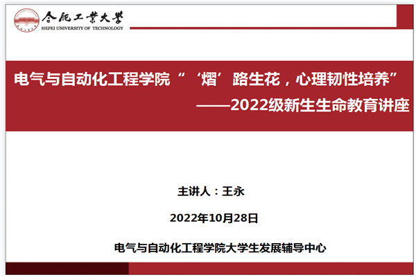 为帮助新生更好地开启大学生活,在疫情下认识生命的意义和价值,学会自我调适,培养积极健康的心态,10月28日晚,3003新葡的京集团网址通过腾讯课堂平台学院开展“‘熠’路生花,心理韧性培养”新生生命教育讲座,活动邀请了合肥幼儿师范高等专科学校王永教授主讲,全体2022级本科新生聆听讲座。