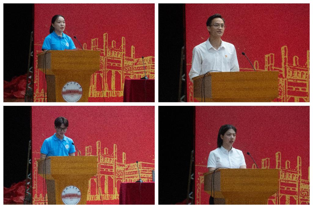 随后,2023级硕士研究生薛博雅代表全体新生向各位领导老师的关怀与帮助,向家长长久以来的辛勤陪伴表示感谢。高年级研究生代表电气工程专业2021级叶寿洪以爱真理,共赴新时代学海之约、爱挑战,共担青年人历史使命、爱工大,共谱新时代绚丽华章三个维度与新生共勉“工大电气人”这个名字的深深内涵。机器人工程专业2023级2班金泠烨代表本科新生提出倡议:入学军训,提振士气;勤奋学习,精益求精;以德为先,树立目标;社团招新,积极参与;实践活动,科研创新;强壮体魄,文明启迪。电气工程及其自动化专业2021级2班程伊阳作为高年级本科生代表发言,她以奋斗绘就青春画卷、实践擦亮青春底色、信仰砥砺责任担当回答了“如何开启多姿多彩的大学生活?”的共性设问。