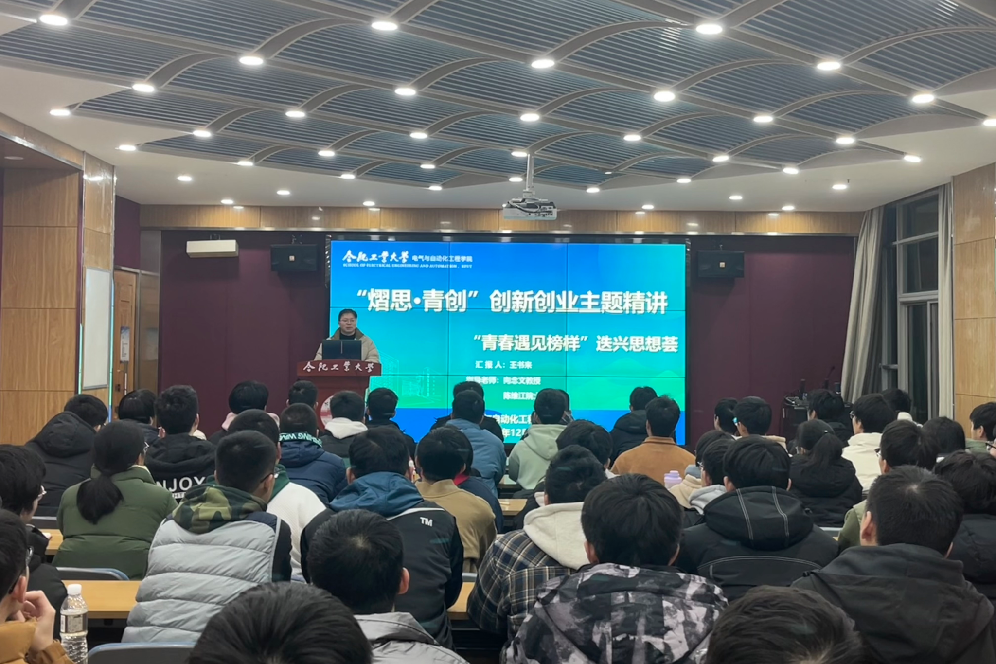 12月13日晚,3003新葡的京集团网址“青春遇见榜样”迭兴思享荟之“熠思·青创”创新创业主题精讲在屯溪路校区第一宣讲厅开展,活动邀请第十七届“挑战杯”全国大学生课外学术科技作品竞赛主赛道二等奖获得者王书来主讲。