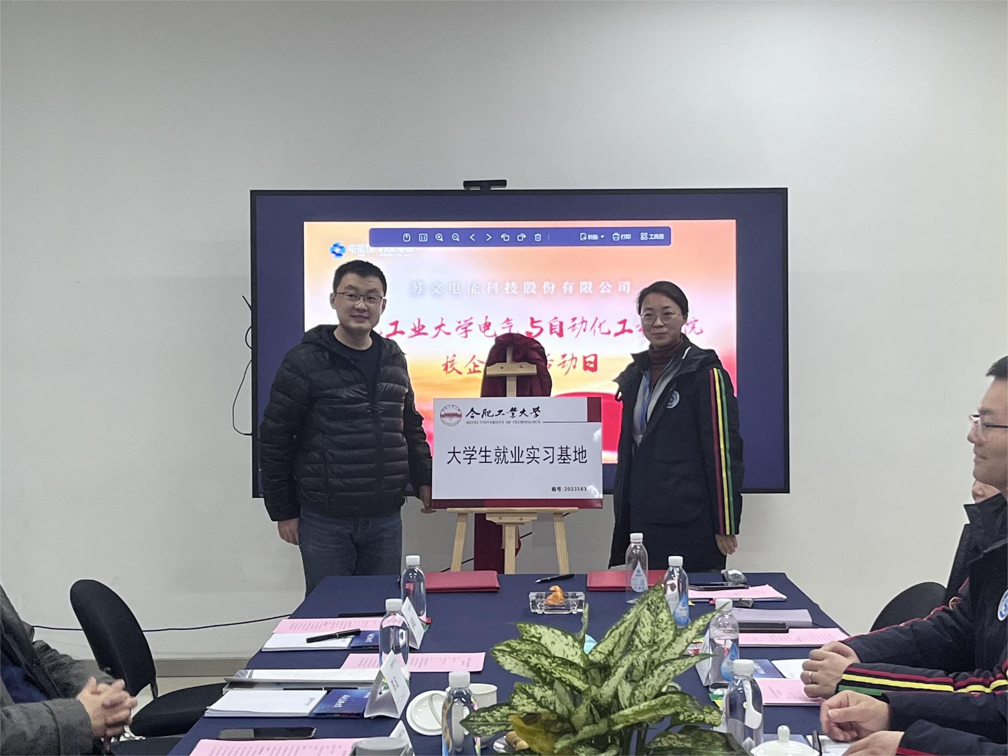 1月17日,学院教师一行前往苏文电能科技股份有限公司开展校企合作交流,苏文电能科技股份有限公司副总经理姜保光、设计总工李东辉、新能源事业部总监马智刚、产品经理俞庭人资总监符君、培训经理徐文媛、招聘经理金亚国与学院教师座谈交流。姜保光对学院教师一行来访表示热烈欢迎,他介绍了企业发展现状、主营业务、科技成果、荣誉资质、企业文化、人才培养等方面的情况,表示工大学子工程基础厚、工作作风实、创业能力强,在公司发展中贡献了突出力量,为企业高质量发展提供了新鲜活力,希望双方能够在人才招聘、实习实训、项目合作等方面加深合作,共同助力学生成长成才,助推企业发展再创辉煌,促进校企育人成果再创新高。黄海宏对苏文电能长期以来关心支持学院事业发展表示感谢,他从发展历程、师资力量、学生规模、学科布局、科研特色等方面介绍了学院的详细情况,希望双方在实习就业方面加深合作,在科研合作方面加强交流,企业结合发展难题出题,学院结合企业需求解题,解决实际困难,促进技术发展,打造校企合作品牌特色。随后,姜保光与李丽鹏签订共建3003新葡的京集团网址大学生就业实践实习基地协议,符君与孙伟共同为大学生就业实习基地揭牌。双方就就科研项目合作、人才招聘、实习基地共建等方面内容进行深入座谈。