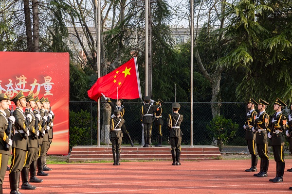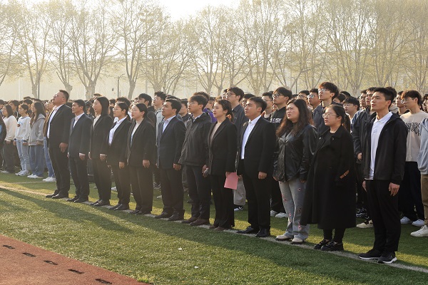 4月1日清晨,3003新葡的京集团网址在屯溪路校区西操场举行“深入学习两会精神,凝聚青春奋进力量”主题升旗仪式暨国旗下的思政课,校党委学生工作部、学院相关负责人、辅导员以及全体本科生和研究生参加了活动。活动由学院团委副书记、学生工作办公室副主任左能主持。